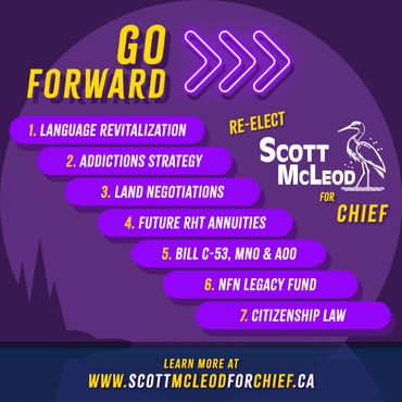 Since 2015, Chief Scott McLeod has played a key role of influence amongst the 21 Robinson Huron Treaty Chiefs to successfully reach a $10 billion dollar Annuity Claim settlement and he continues to work to get this settlement to our communities while preparing for negotiations in the “Go Forward” settlement.